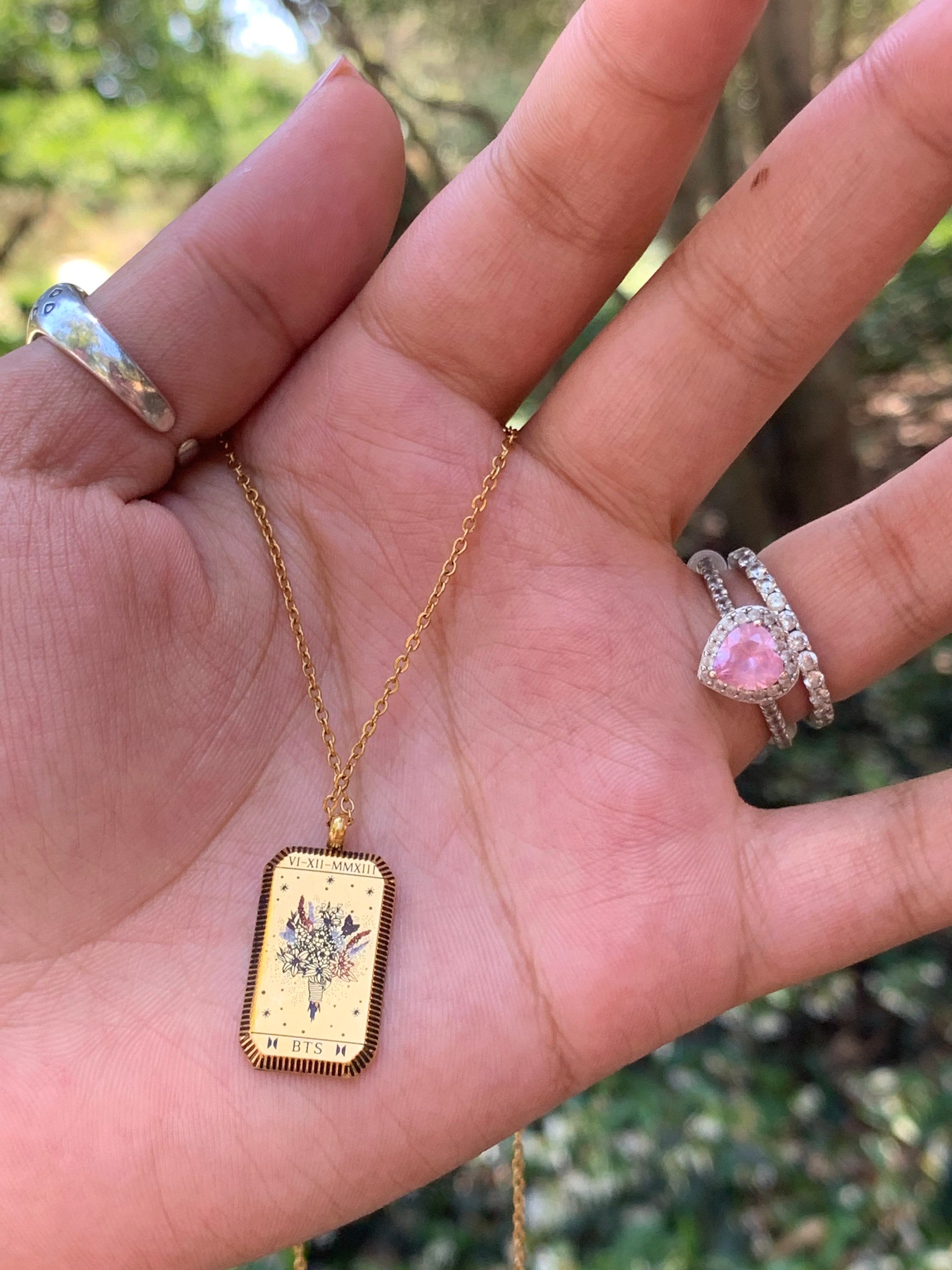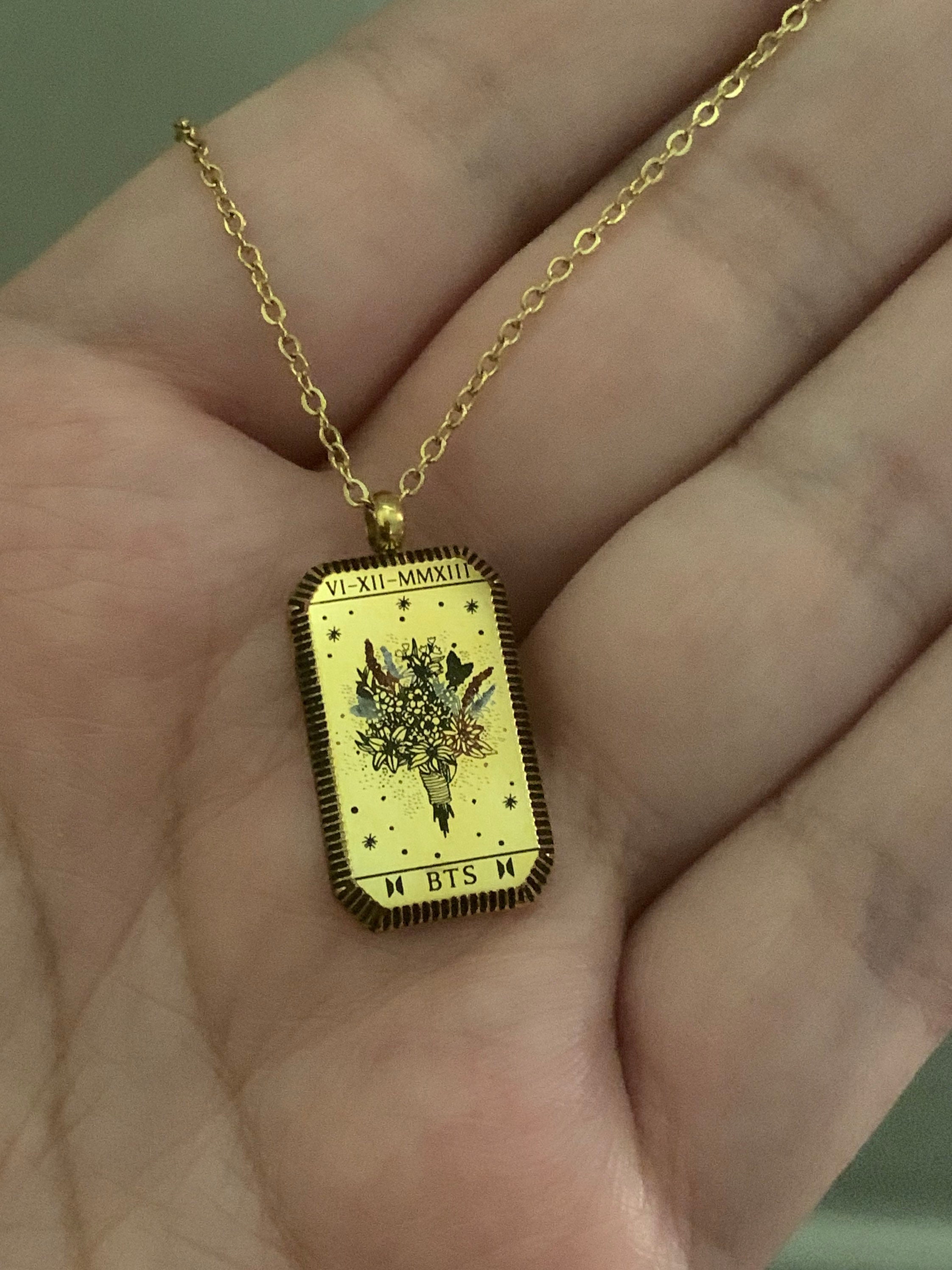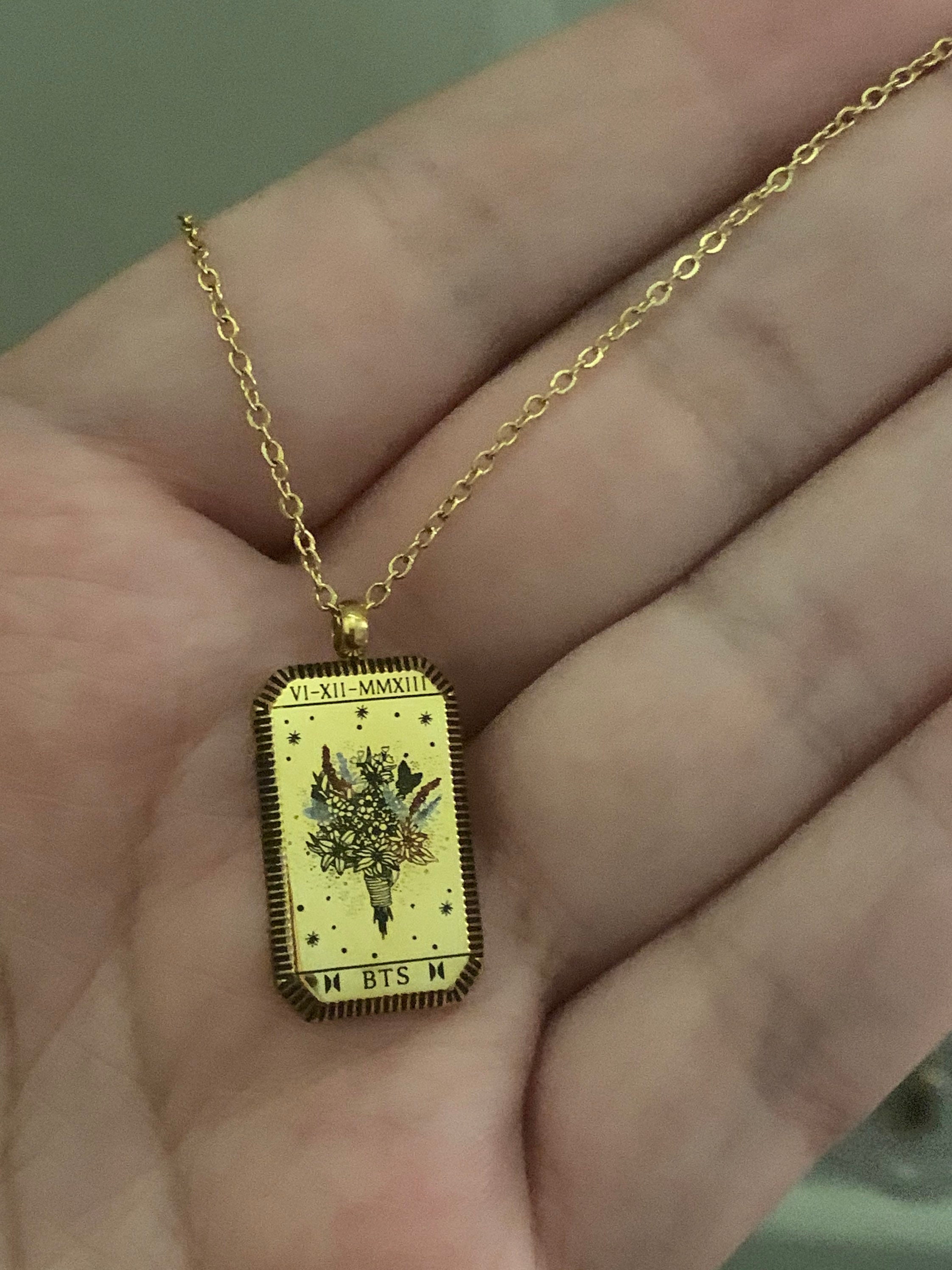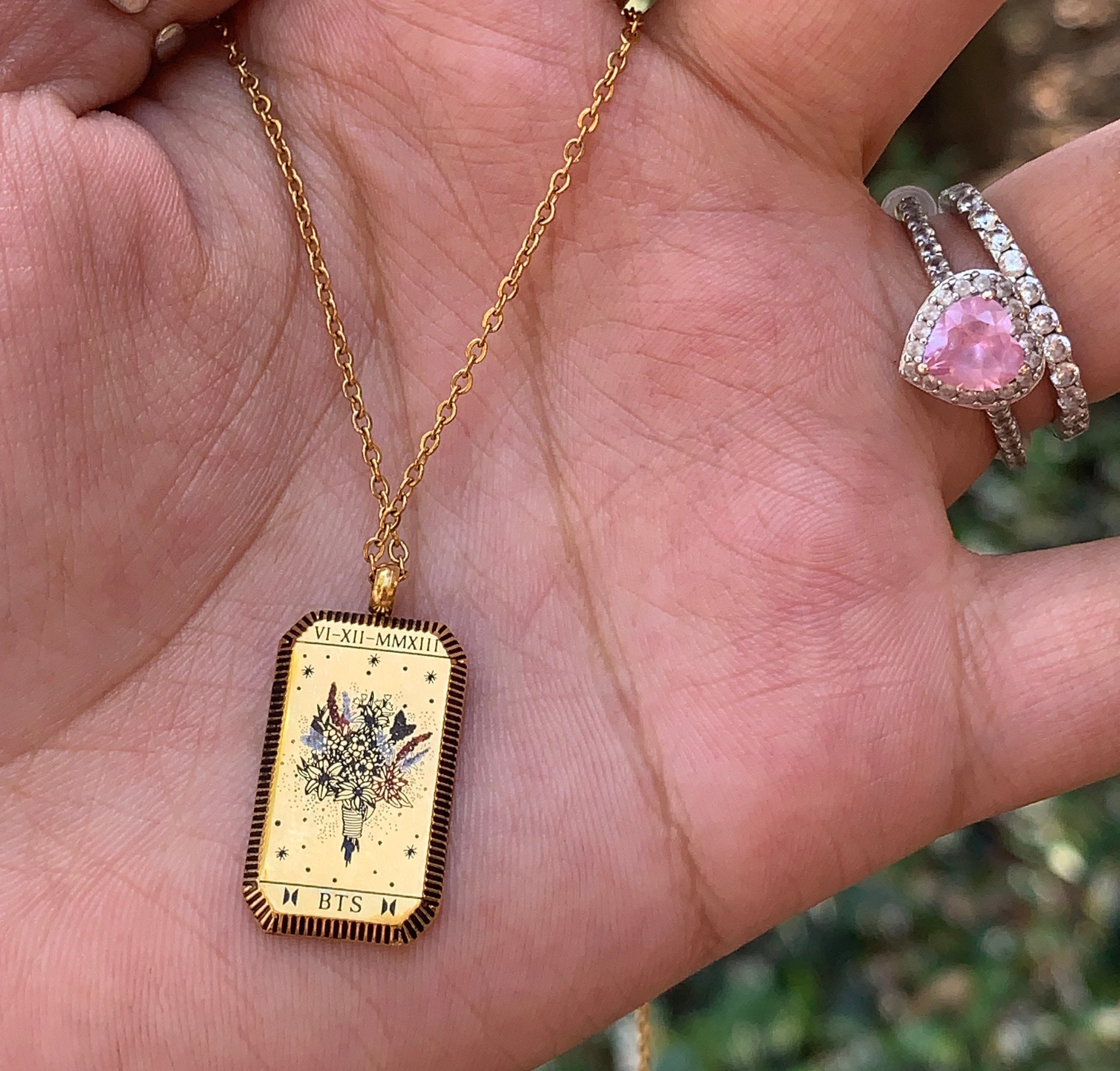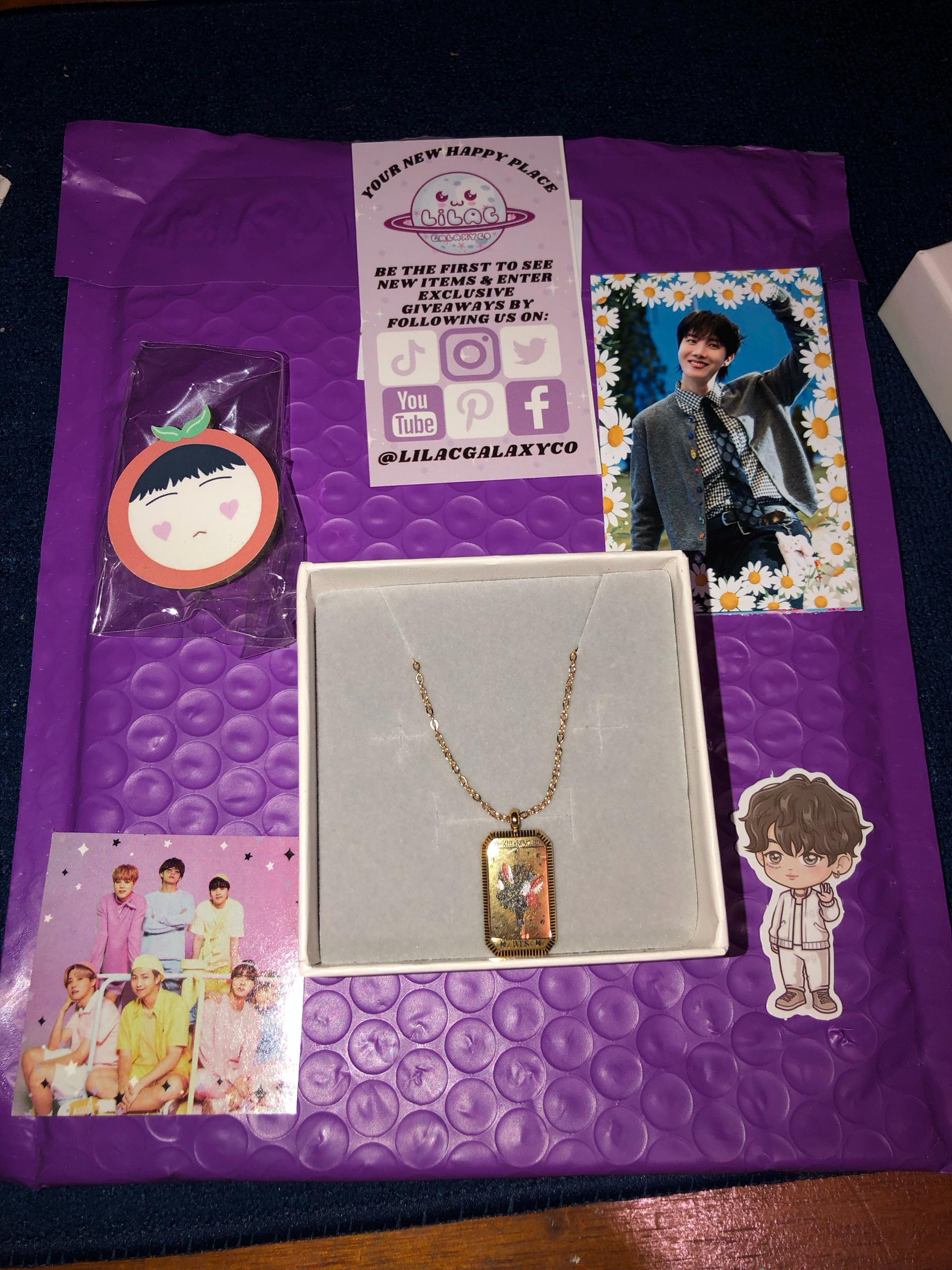 I’ve purchased from this shop a few years ago at an in-person cup sleeve event and loved everything! recently my favorite necklace, the Life Goes On necklace from this shop, was stolen from me, and it bummed me out that I couldn’t replace it. However, when I saw that this festa anniversary necklace was still in stock I was so happy to finally get one! I’ve been wearing it at work and have received a lot of compliments on it! also, I really loved the freebies, especially the tangerine yoongi pin! so cute. thank you so much! 💜