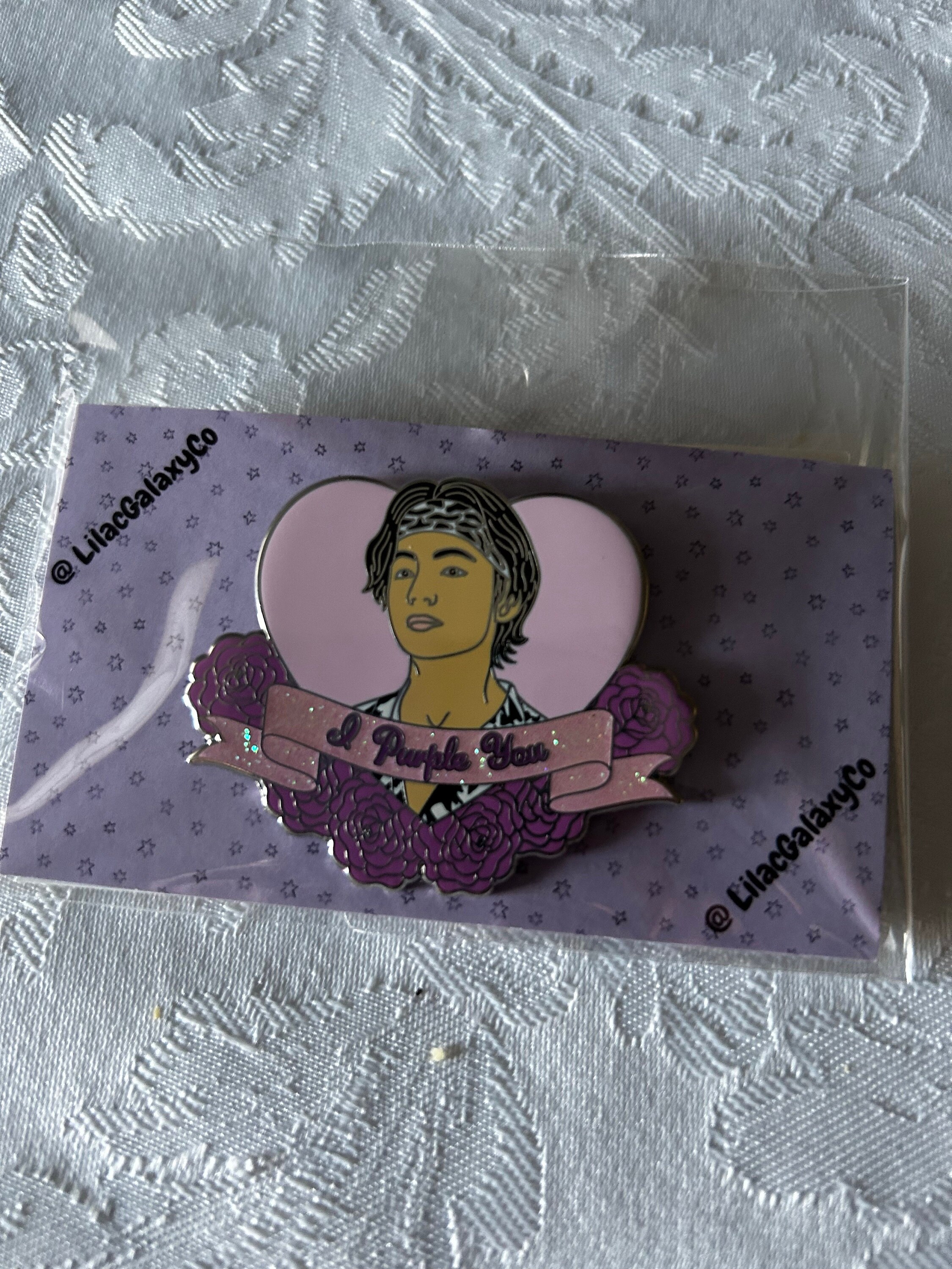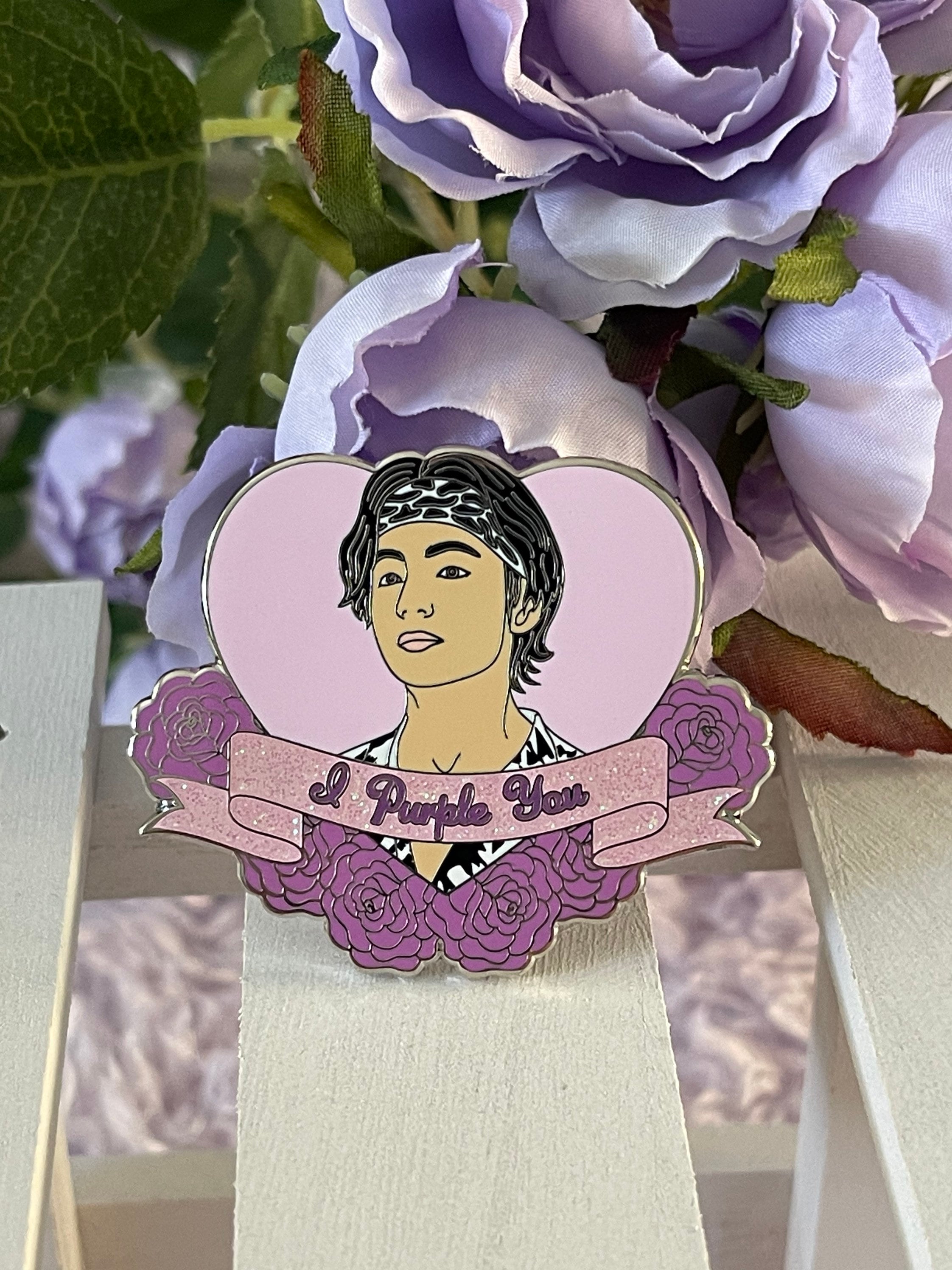 Welcome to our Bangtan Valentine Enamel Pin Series! Pin 6 out of 7 is our sweet Taehyung ( V )! This listing is for a BTS enamel pin featuring a sweet message from Taehyung ( V ). Placed in a heart with flowers surrounding the bottom and a banner that says “I Purple You” - inspired by his infamous words to ARMY! This pin is a perfect way to show your love for BTS and V’s sweet message.