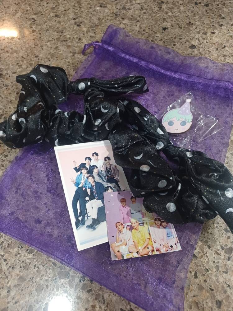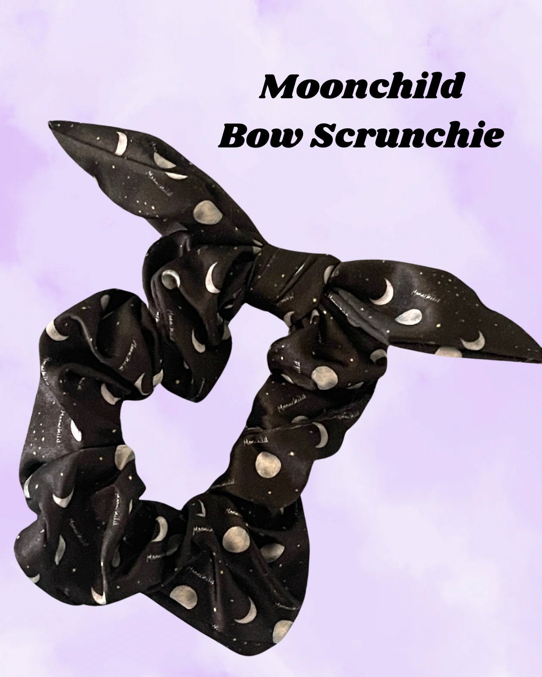 Keep your hair up during the summer days in style! Bow Scrunchie inspired by Namjoon’s song Moonchild. Beautiful hand drawn pattern featuring different phases of the moon and the word MOONCHILD . A must have for all my RM lovers. Standard size bow Scrunchie Silk material prevents damage to hair