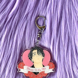 Acrylic is a bit thin compared to other keychains I have… it’s still cute. The sparkle is also not completely concentrated and can see smalls gaps between the glitters. A bit concerned to how well it will hold up to daily wear. The print is slightly off center, but has to be for keychain attachment. Minor noticing that bothers me, but unavoidable unless it was made larger or print made smaller. Overall a cute token for JHOTS.