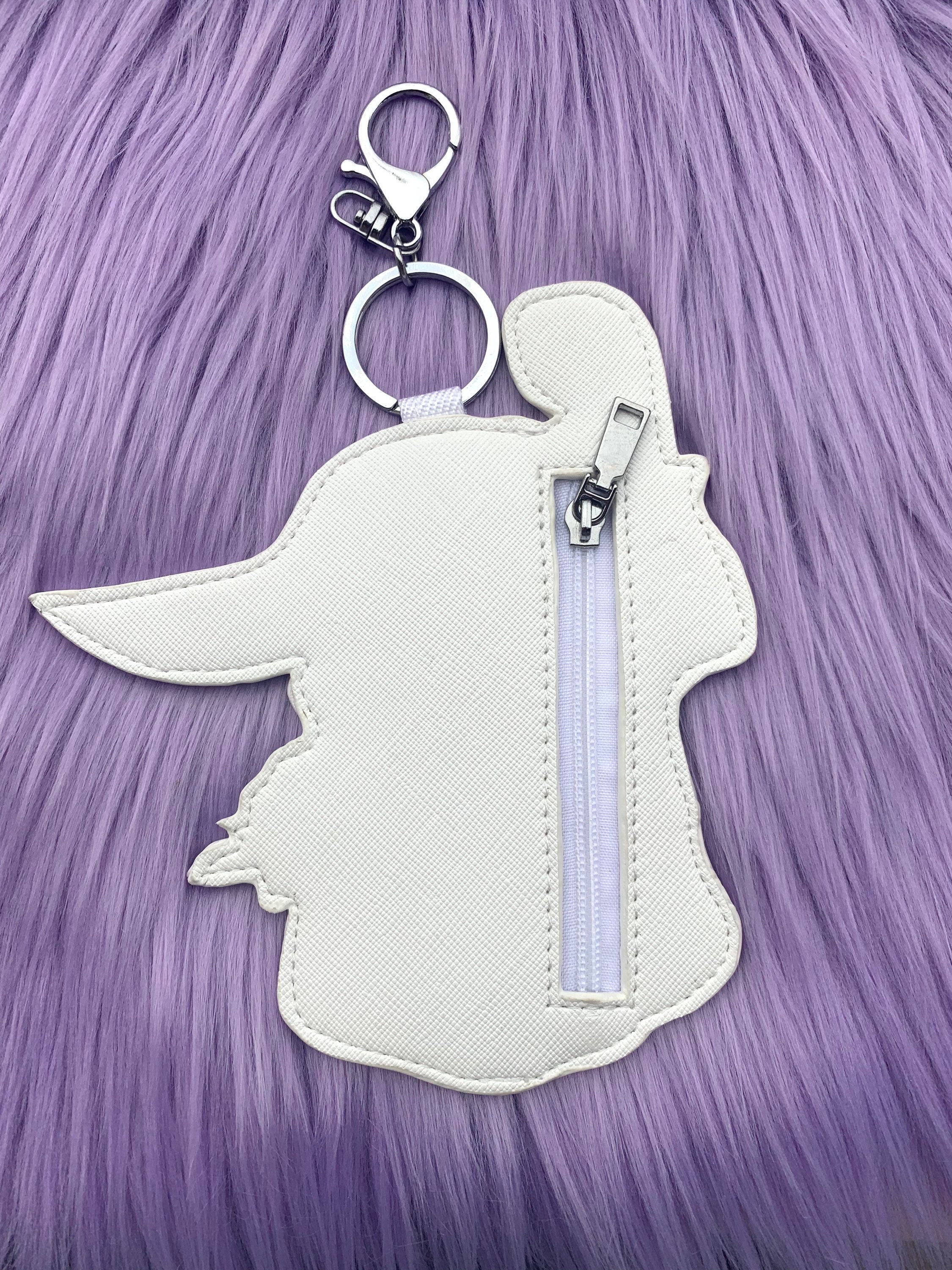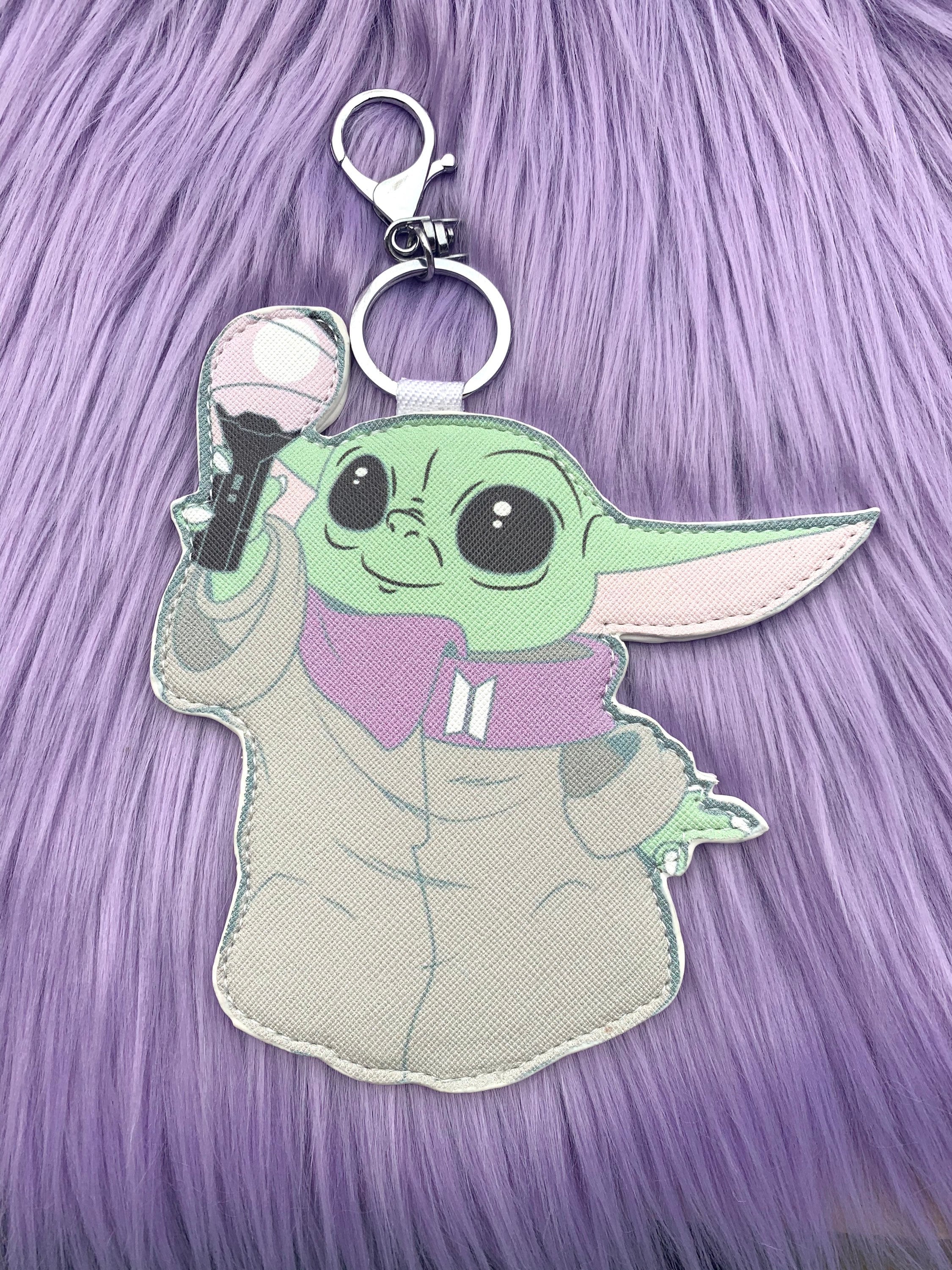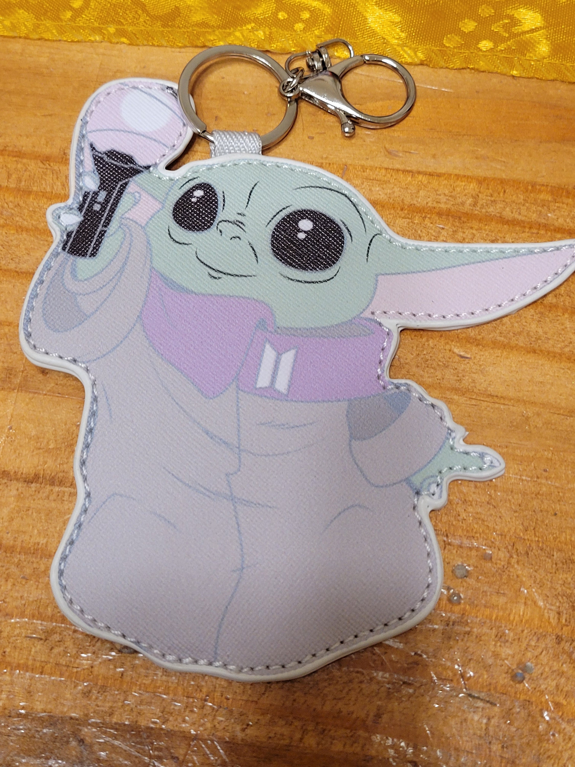 Your money is safe with this Baby Yoda Army zippered coin pouch. Has a keychain to attach it to your favorite bag and take it with you where lever you go! Perfect for back to school! Made of a vegan leather material. Measures about 7 inches tall and 5 inches across.